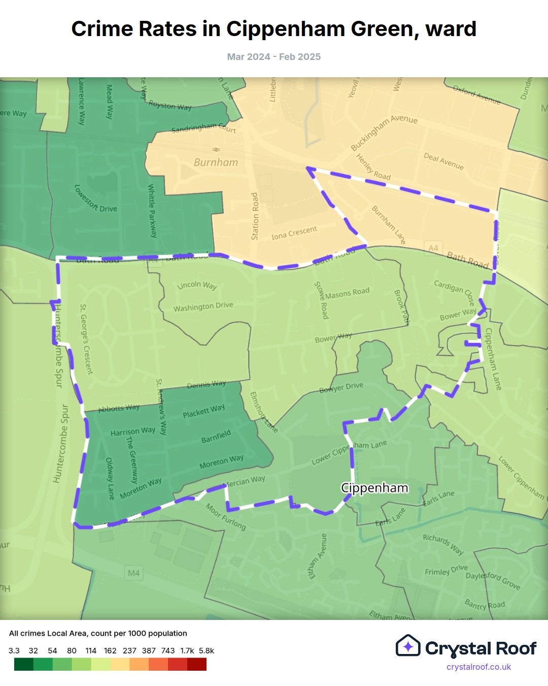 Cippenham Green, (ward) includes areas with the following crime ratings (see map):