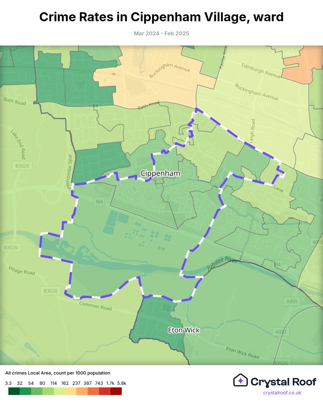 Cippenham Village, (ward) includes areas with the following crime ratings (see map):