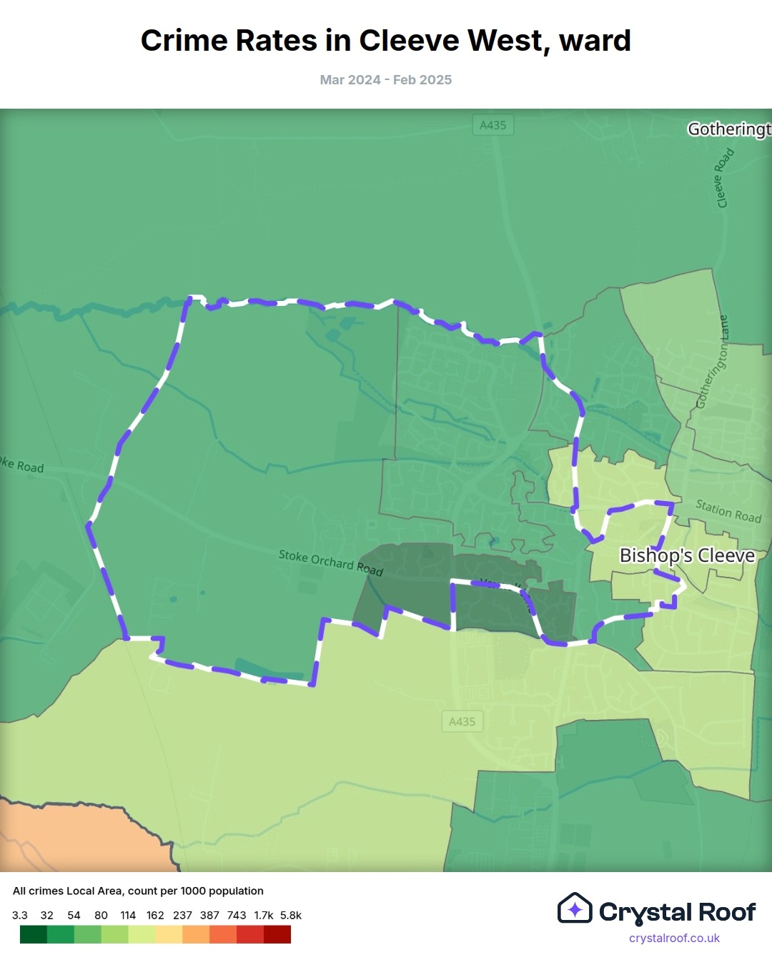 Cleeve West, (ward) includes areas with the following crime ratings (see map):