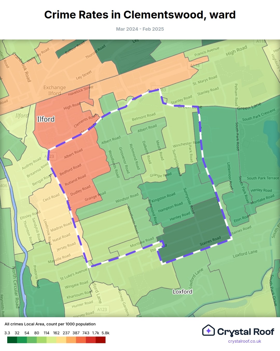 Clementswood, (ward) includes areas with the following crime ratings (see map):