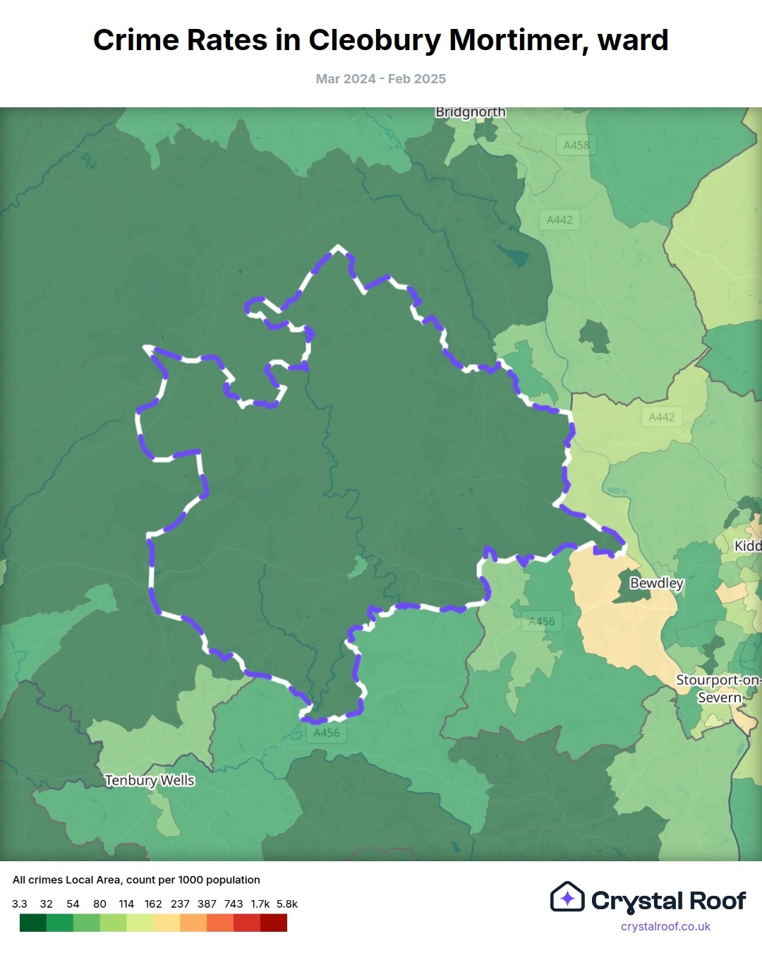 Cleobury Mortimer, (ward) includes areas with the following crime ratings (see map):