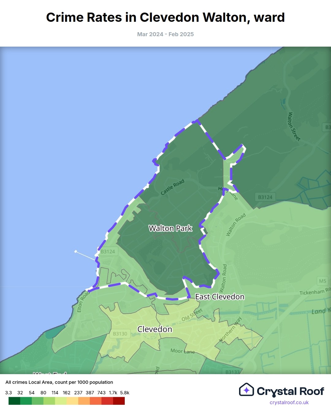 Clevedon Walton, (ward) includes areas with the following crime ratings (see map):