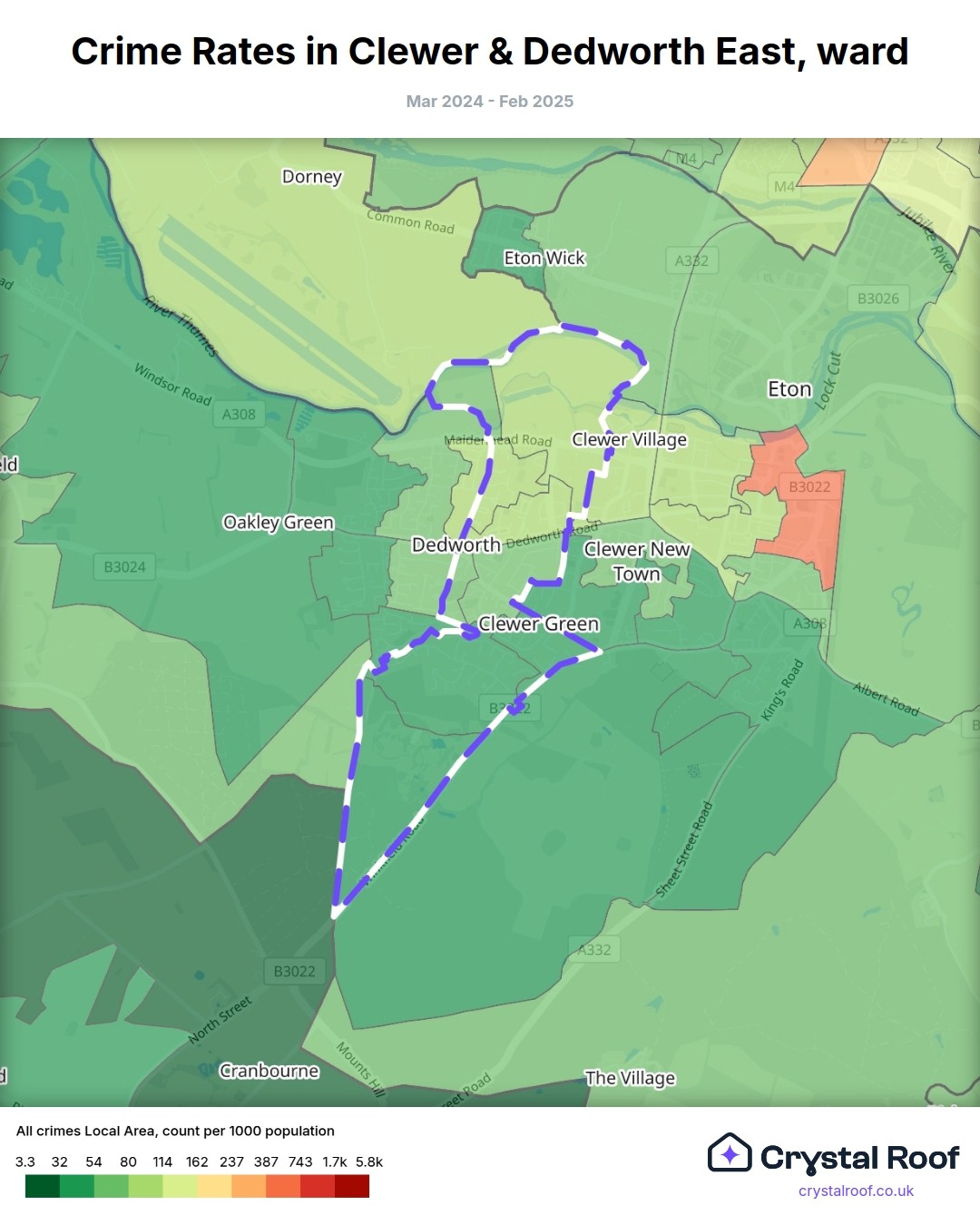 Clewer & Dedworth East, (ward) includes areas with the following crime ratings (see map):