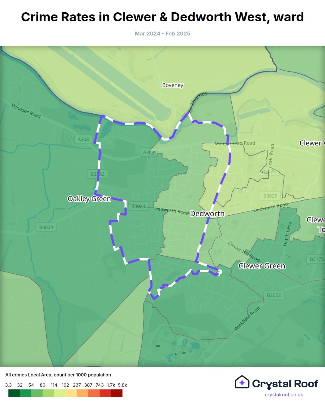 Clewer & Dedworth West, (ward) includes areas with the following crime ratings (see map):