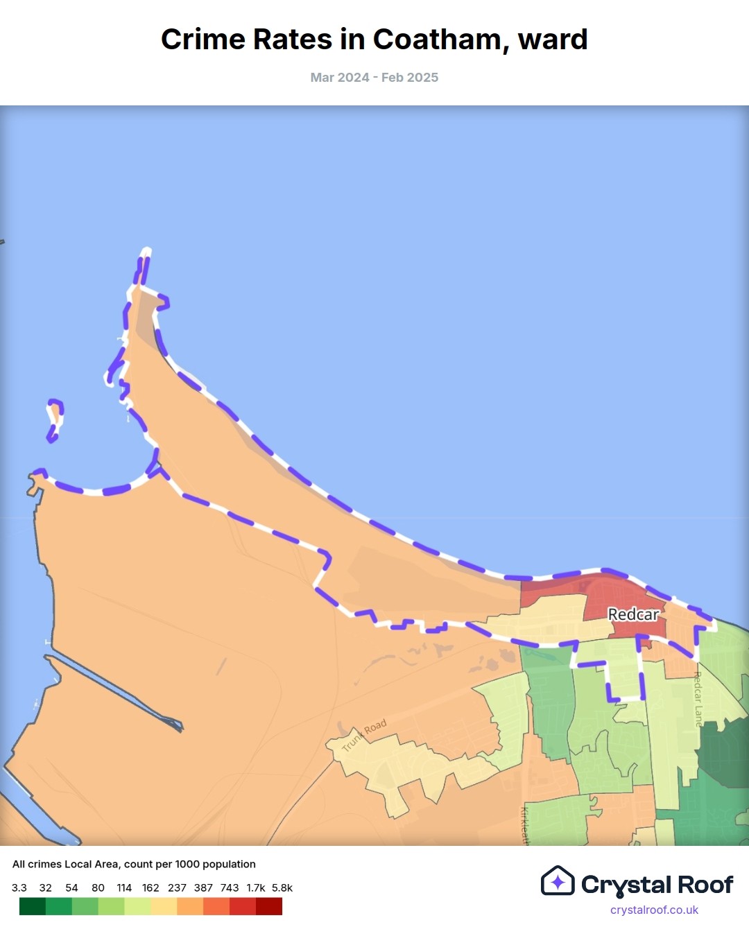 Coatham, (ward) includes areas with the following crime ratings (see map):