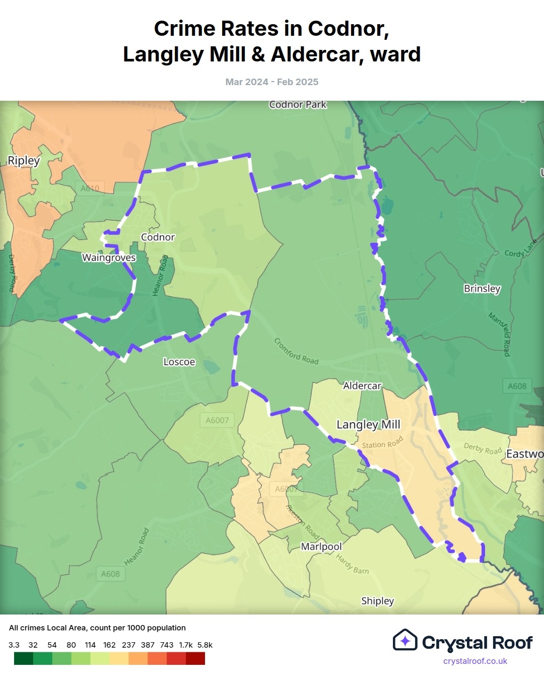 Codnor, Langley Mill & Aldercar, (ward) includes areas with the following crime ratings (see map):