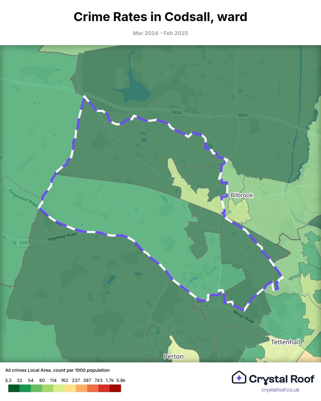 Codsall, (ward) includes areas with the following crime ratings (see map):