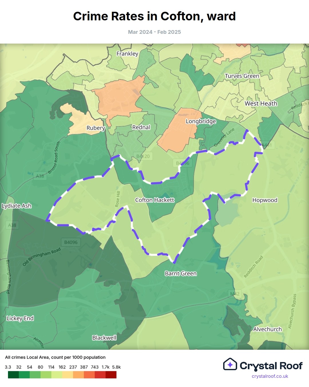 Cofton, (ward) includes areas with the following crime ratings (see map):
