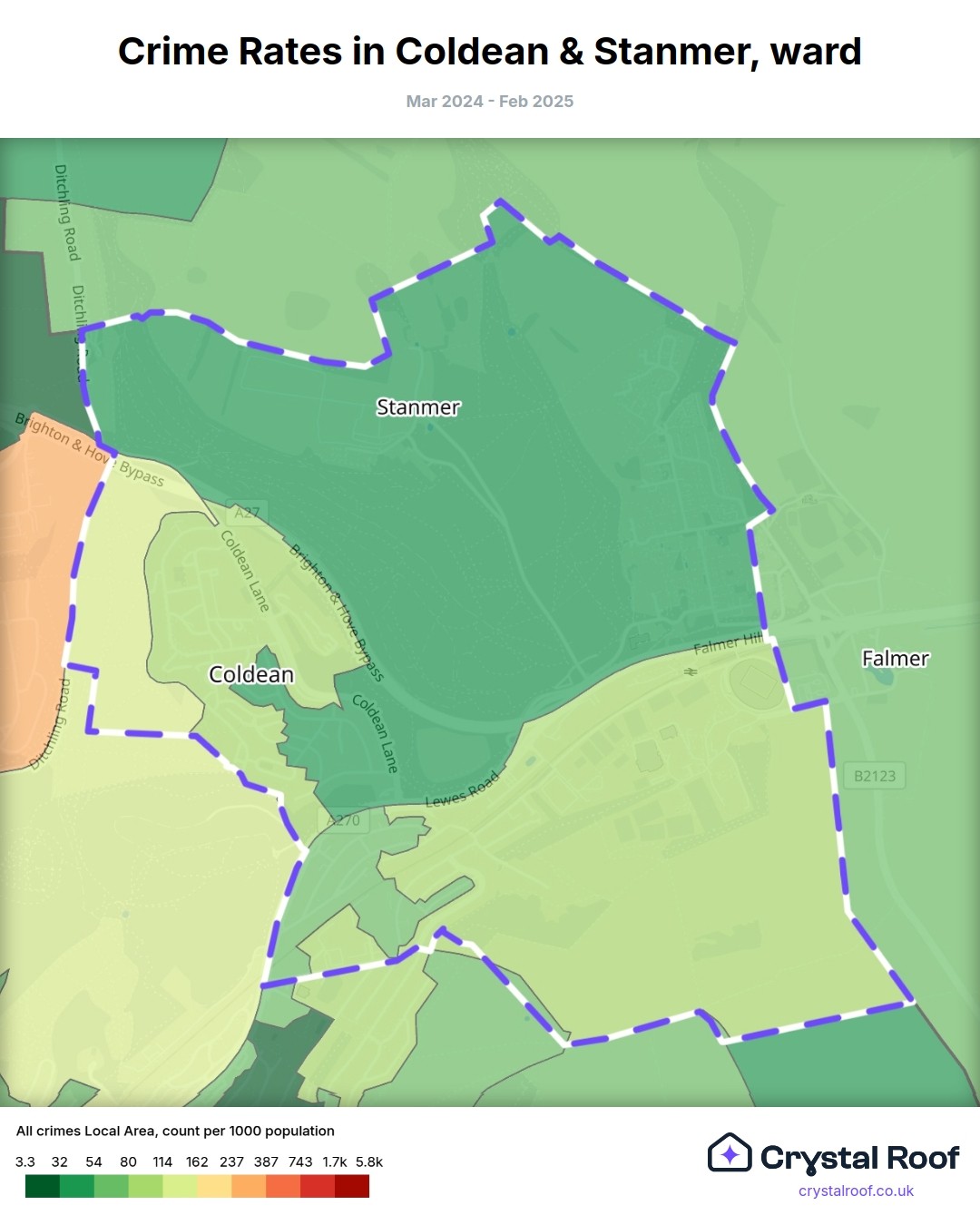 Coldean & Stanmer, (ward) includes areas with the following crime ratings (see map):