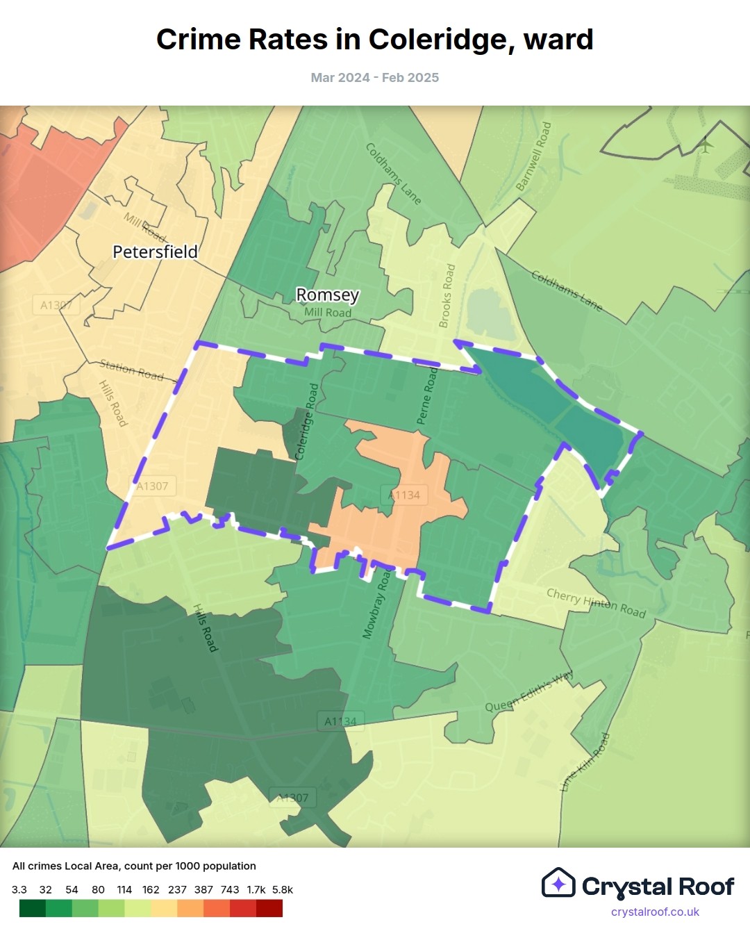 Coleridge, (ward) includes areas with the following crime ratings (see map):