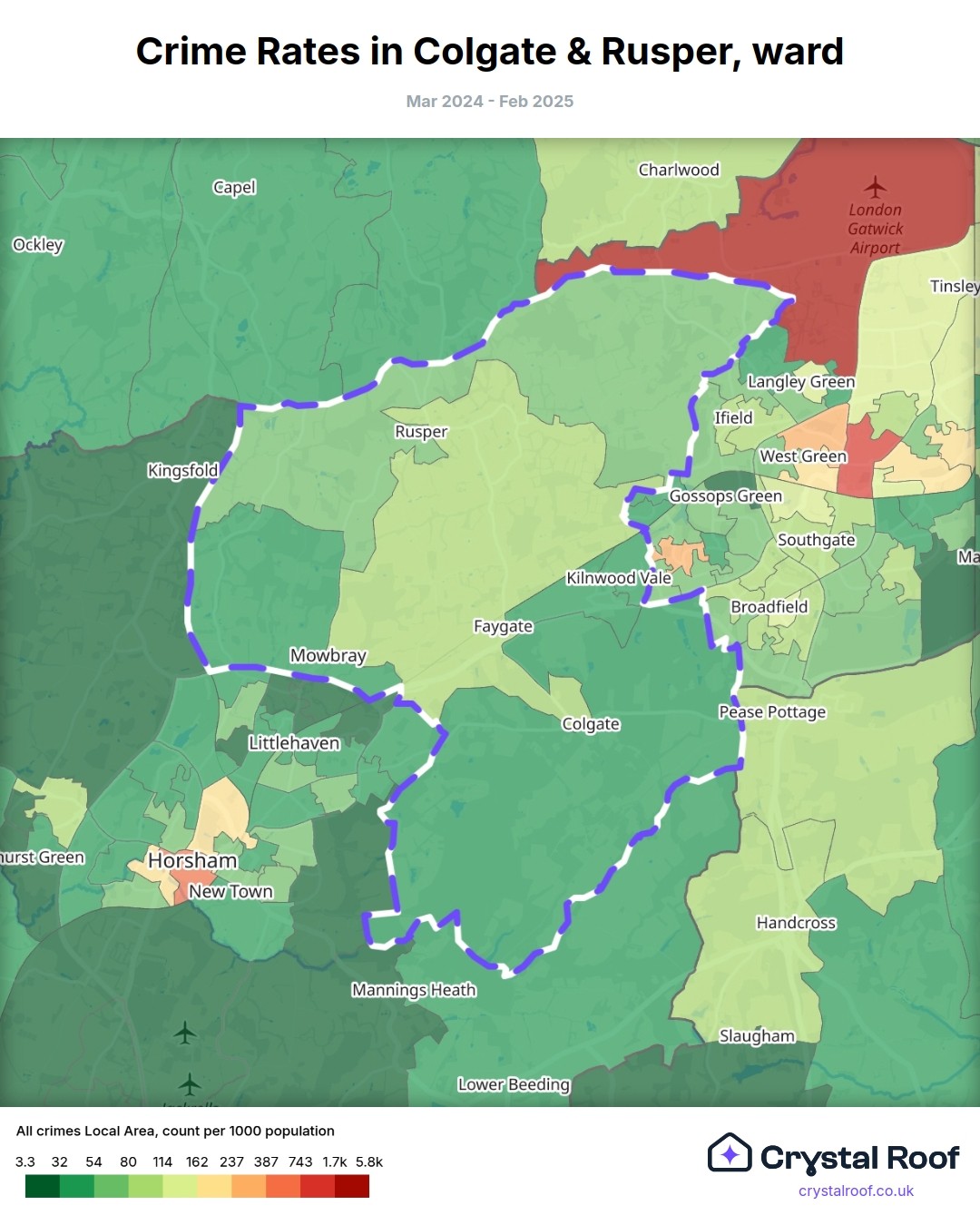 Colgate & Rusper, (ward) includes areas with the following crime ratings (see map):