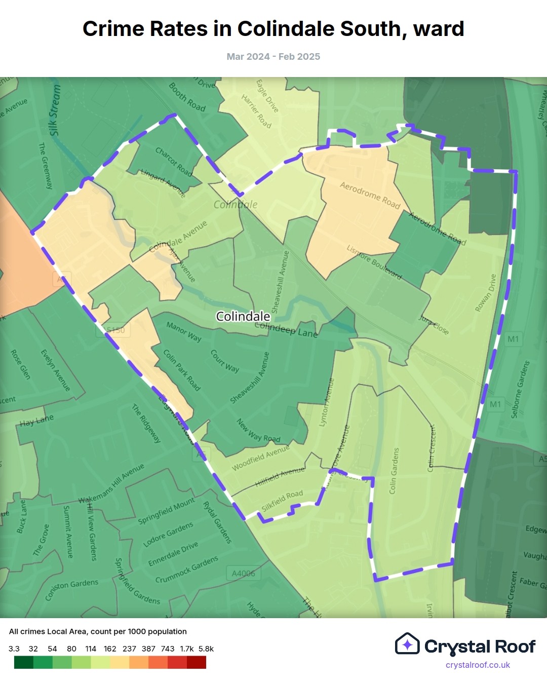 Colindale South, (ward) includes areas with the following crime ratings (see map):