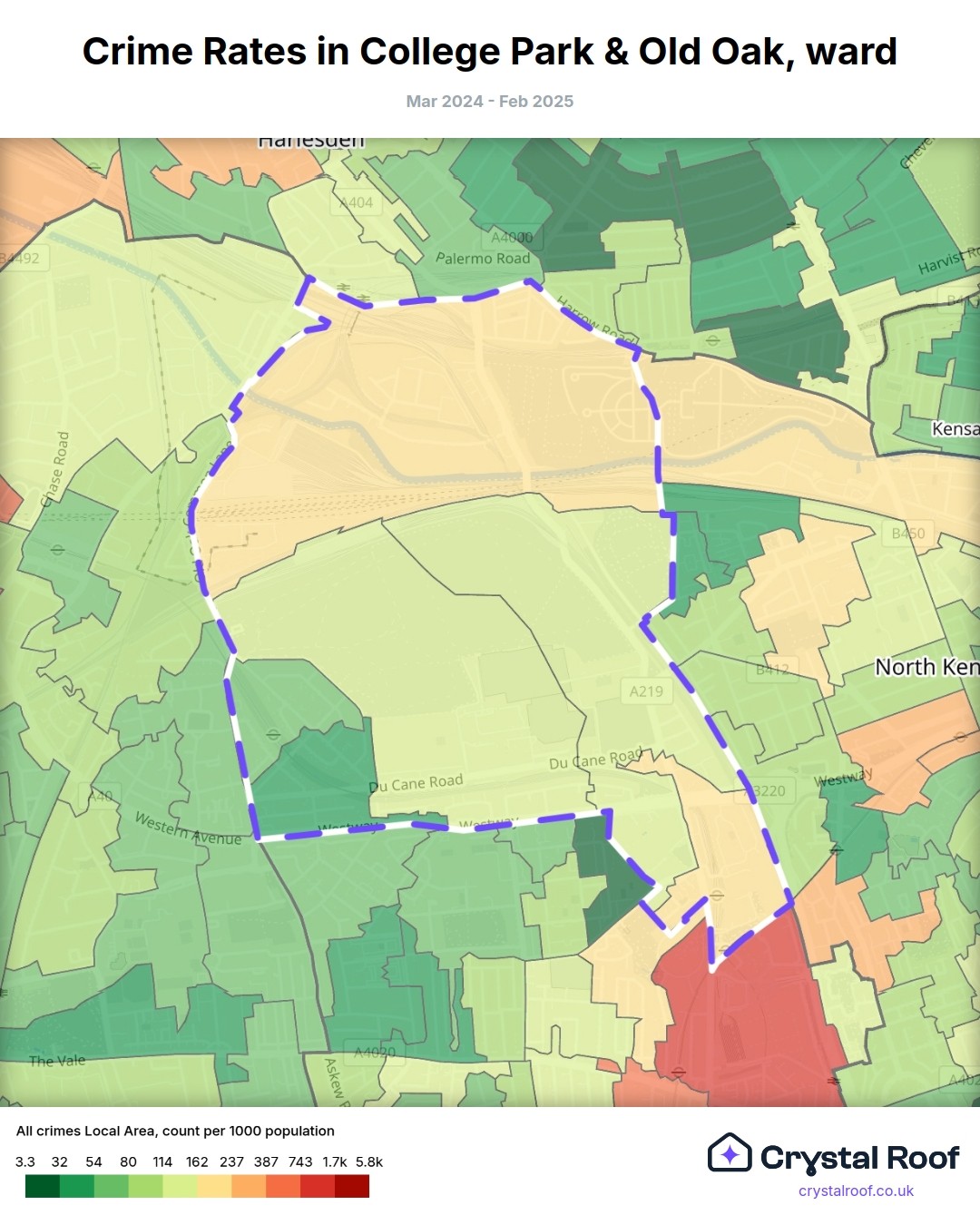 College Park & Old Oak, (ward) includes areas with the following crime ratings (see map):