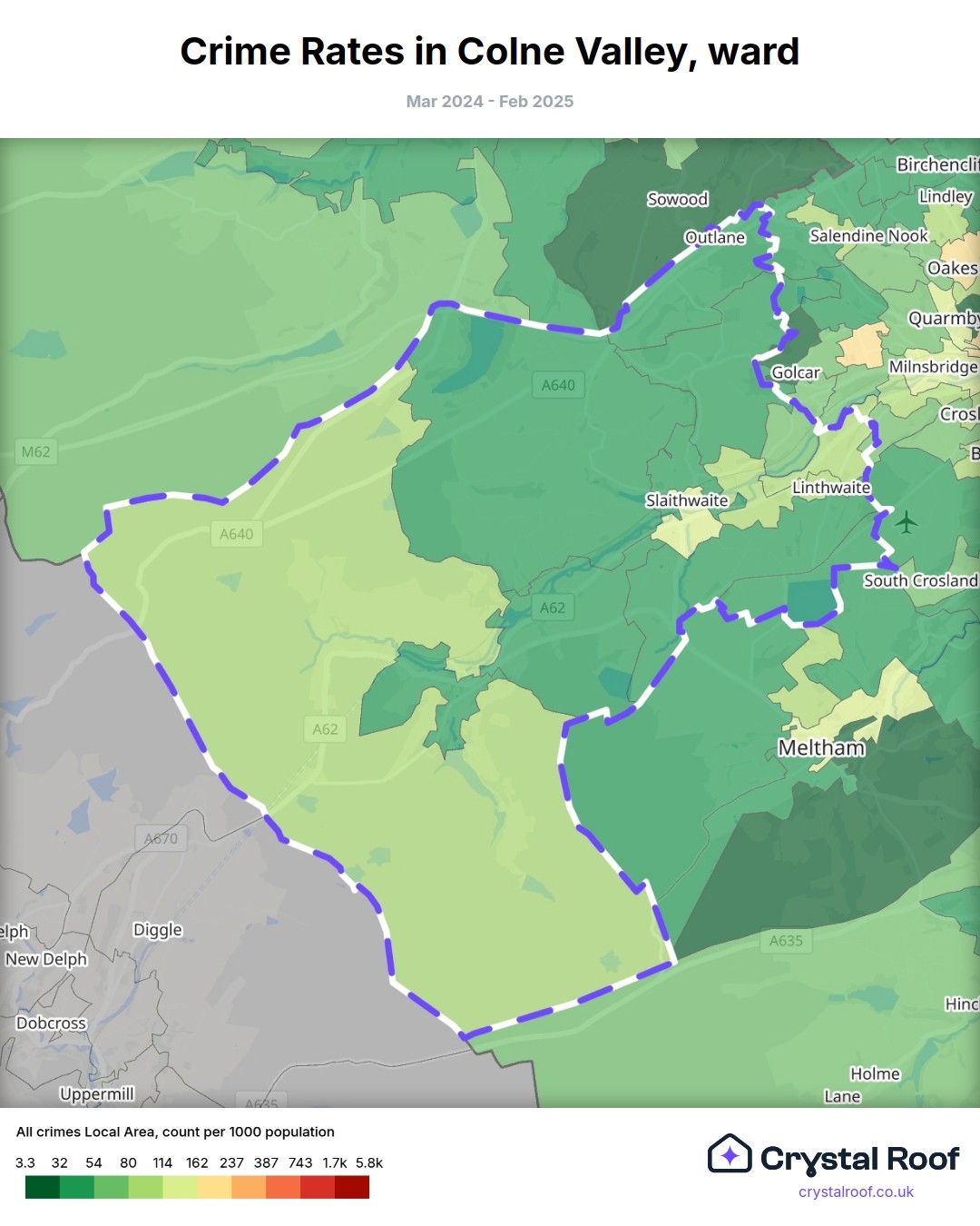 Colne Valley, (ward) includes areas with the following crime ratings (see map):