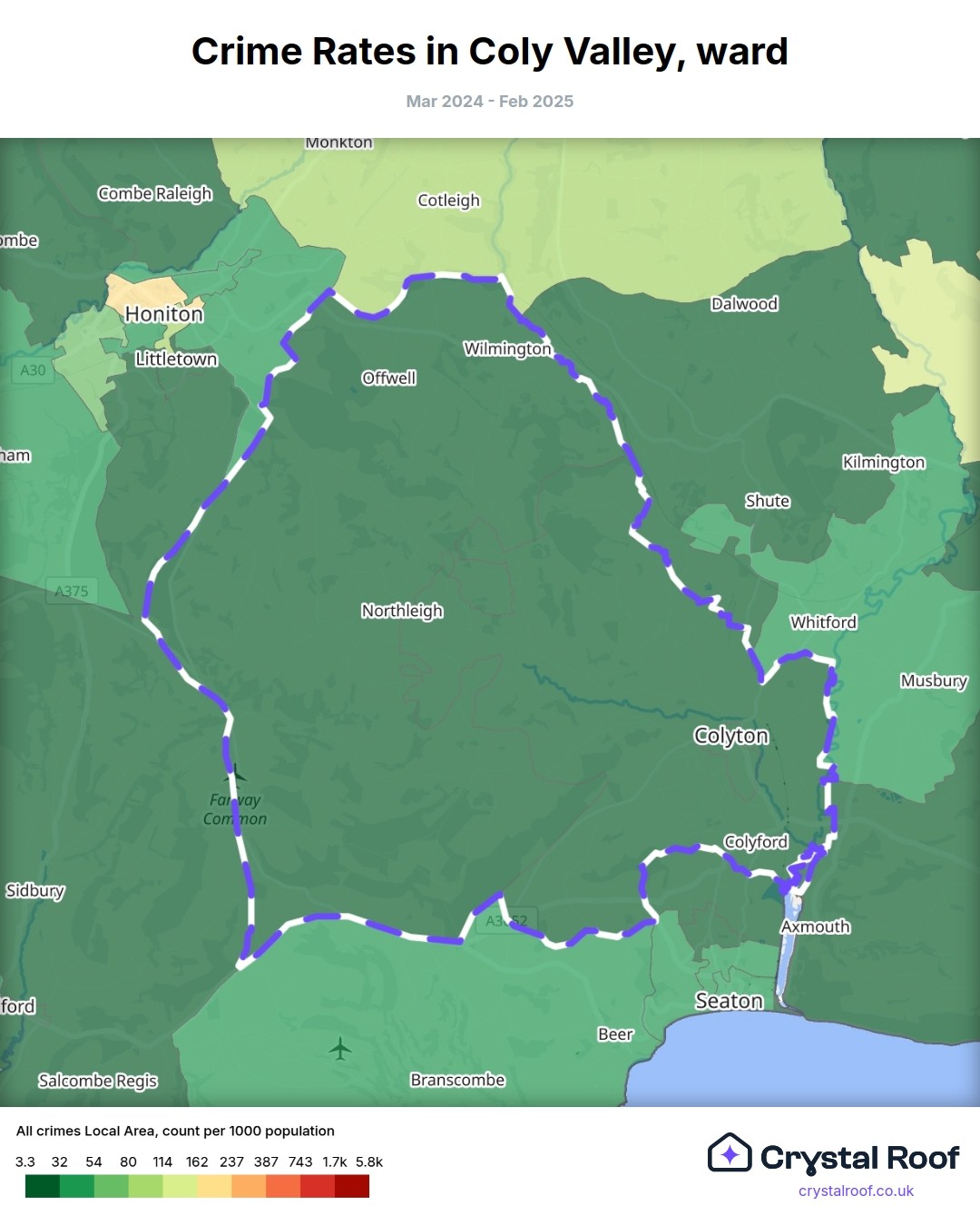 Coly Valley, (ward) includes areas with the following crime ratings (see map):