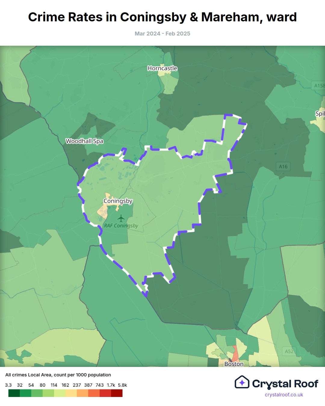 Coningsby & Mareham, (ward) includes areas with the following crime ratings (see map):