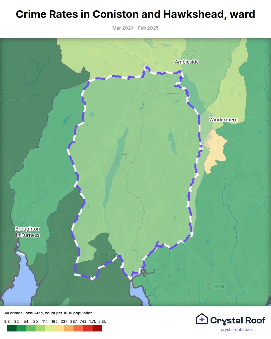 Coniston and Hawkshead, (ward) includes areas with the following crime ratings (see map):