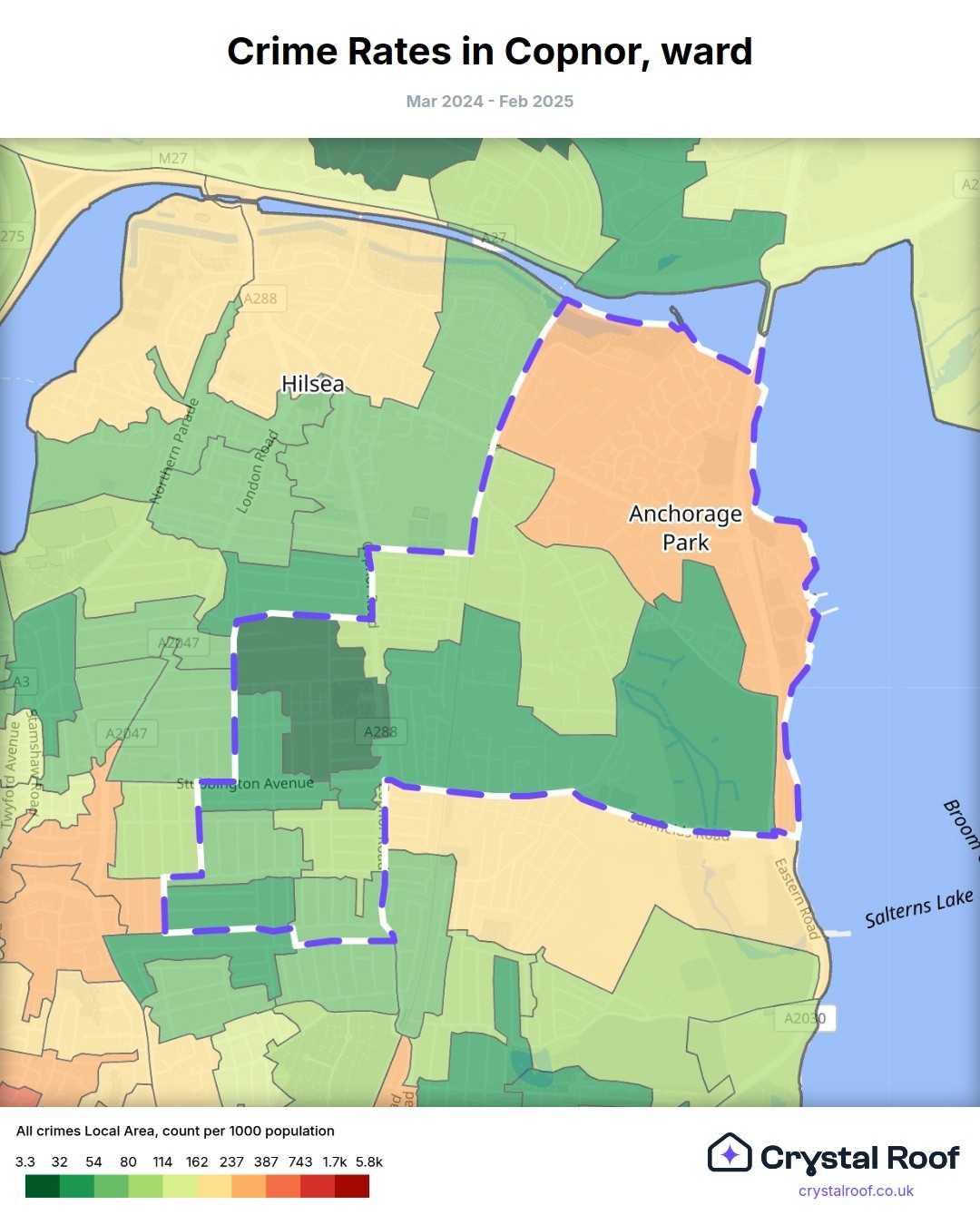 Copnor, (ward) includes areas with the following crime ratings (see map):