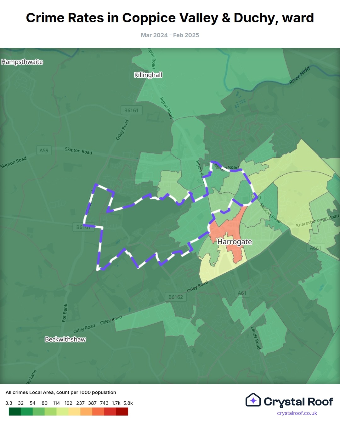Coppice Valley & Duchy, (ward) includes areas with the following crime ratings (see map):
