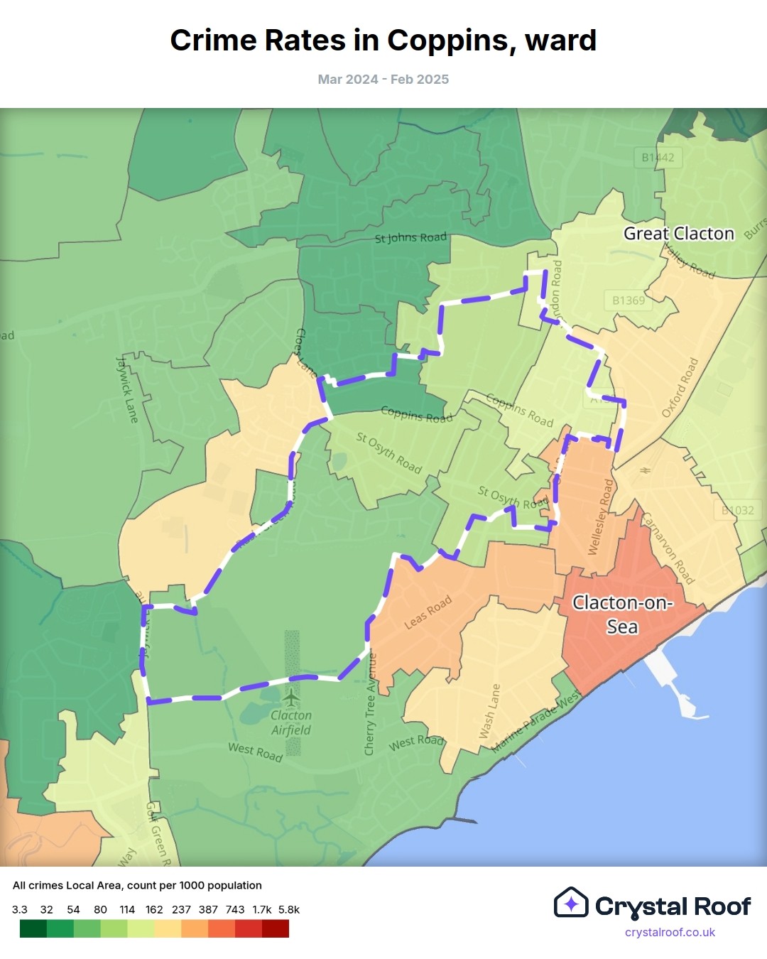 Coppins, (ward) includes areas with the following crime ratings (see map):