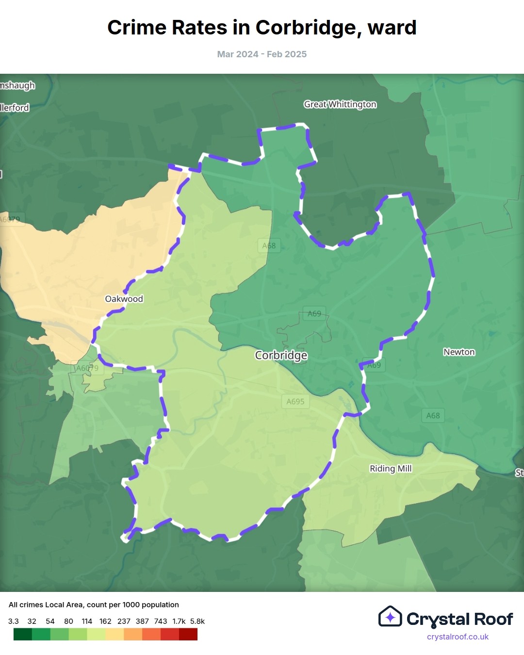 Corbridge, (ward) includes areas with the following crime ratings (see map):