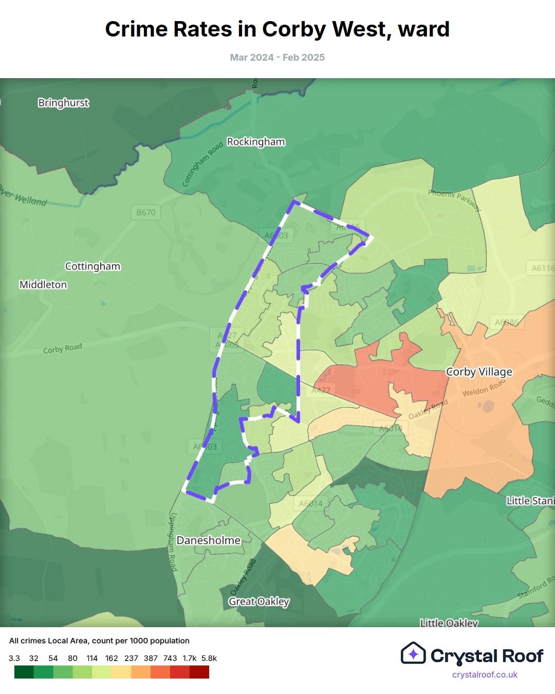 Corby West, (ward) includes areas with the following crime ratings (see map):