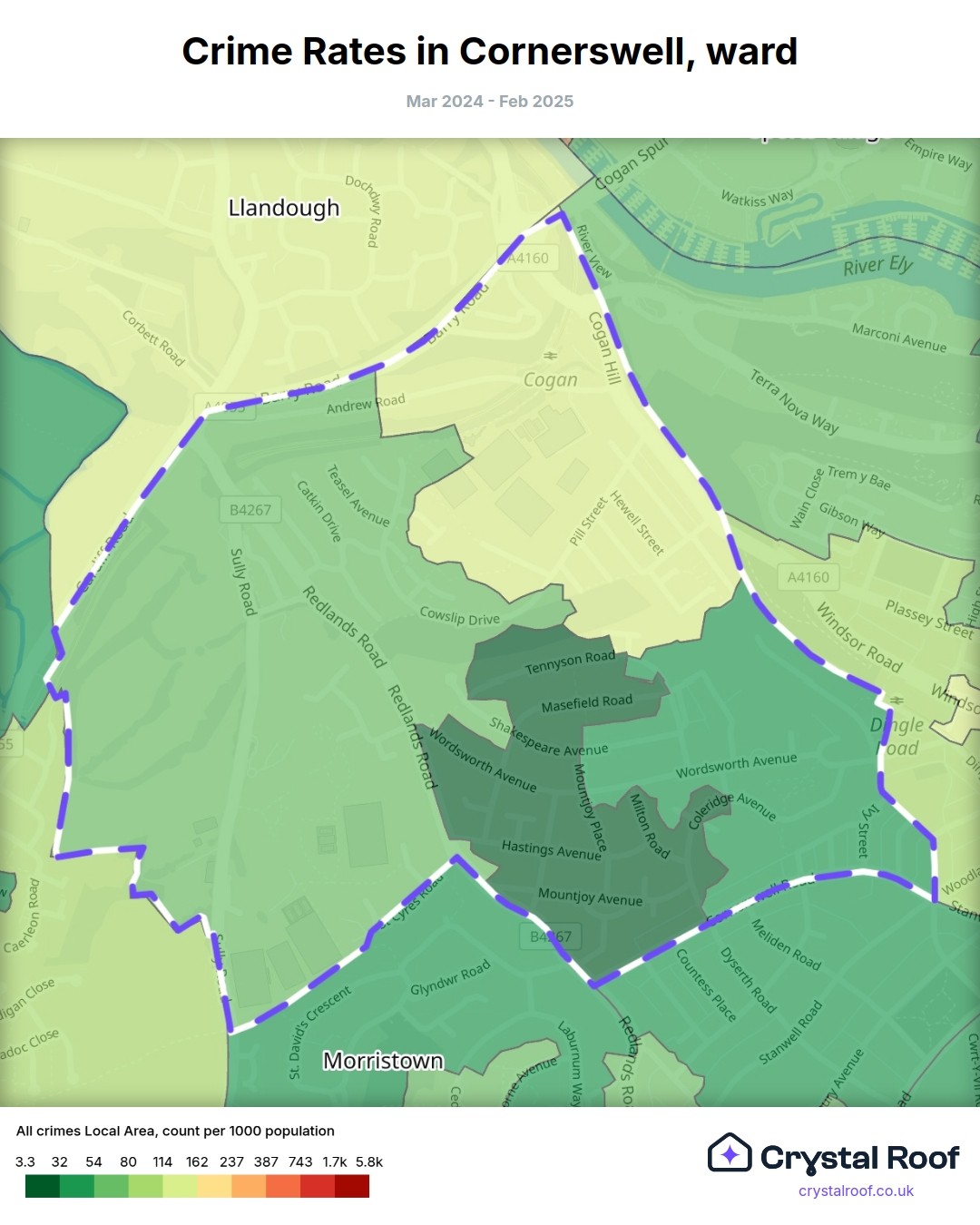 Cornerswell, (ward) includes areas with the following crime ratings (see map):