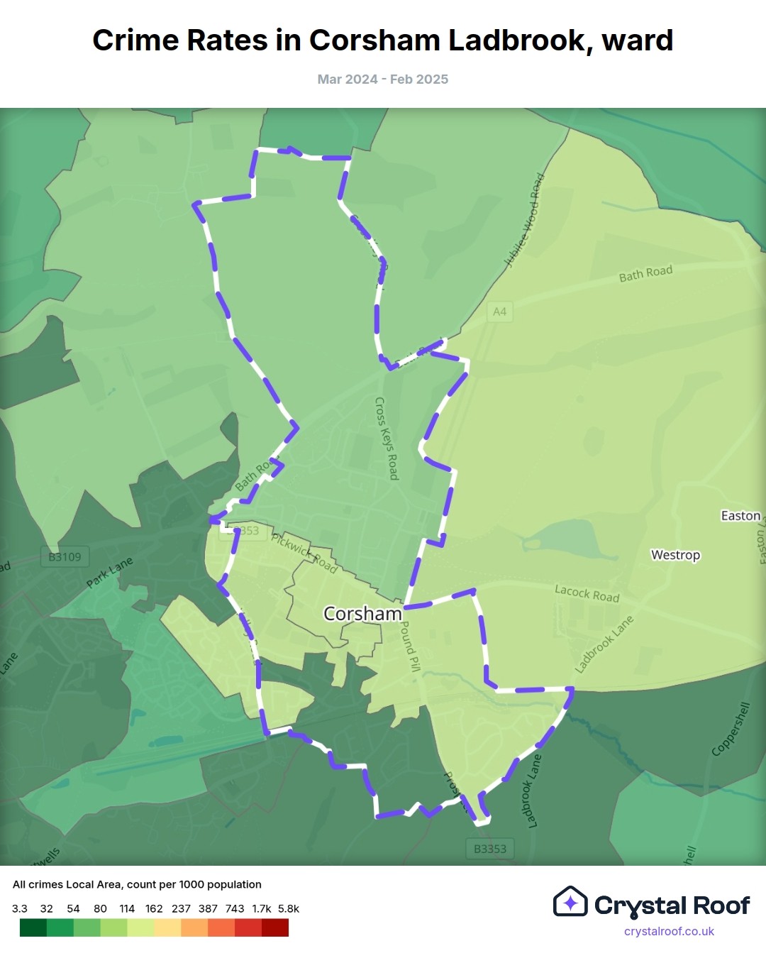 Corsham Ladbrook, (ward) includes areas with the following crime ratings (see map):