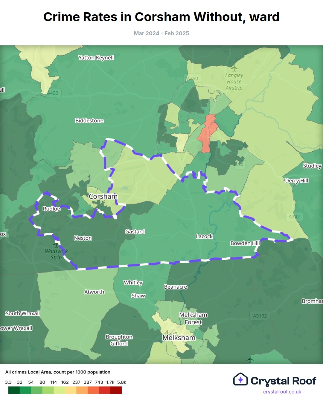Corsham Without, (ward) includes areas with the following crime ratings (see map):