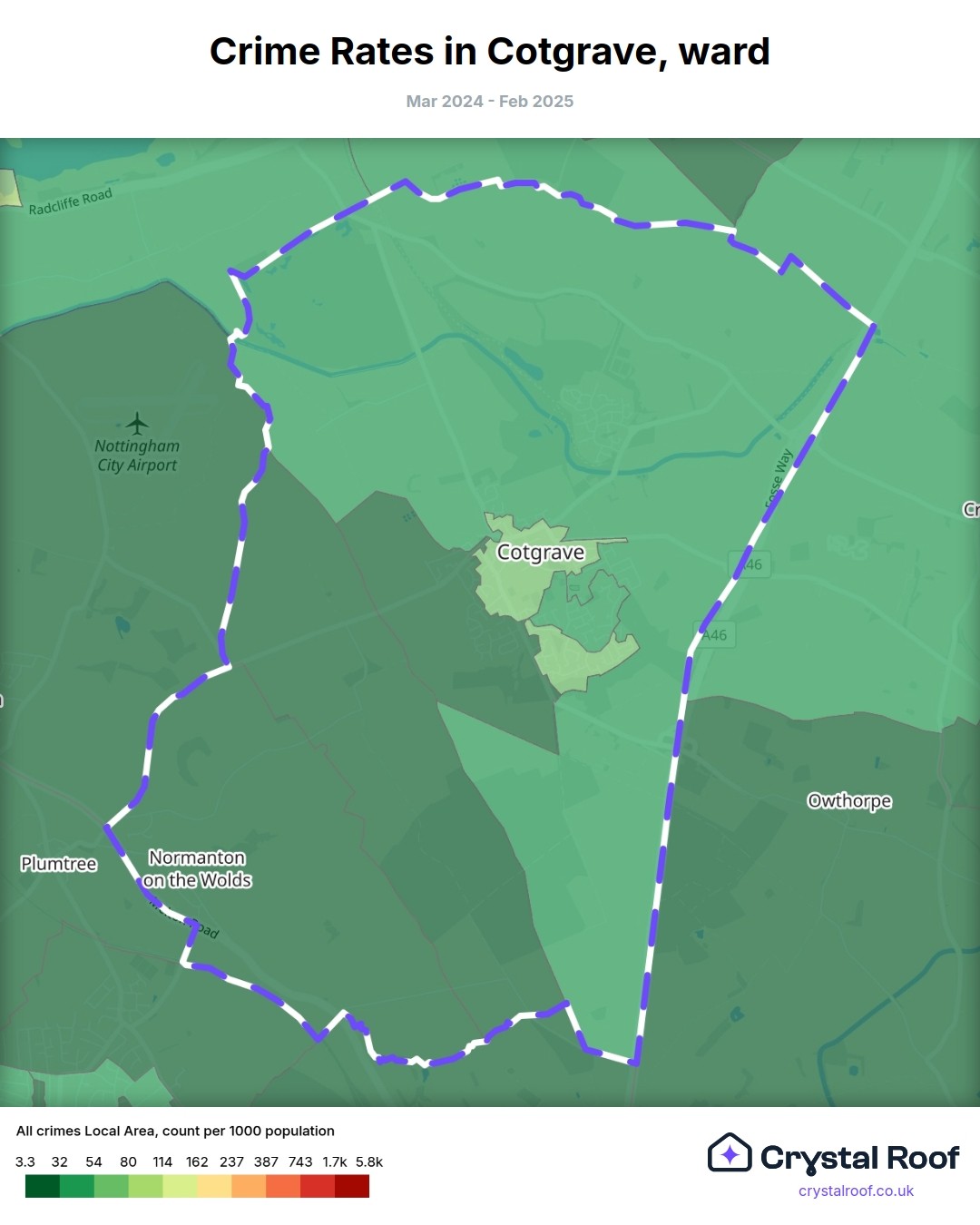 Cotgrave, (ward) includes areas with the following crime ratings (see map):