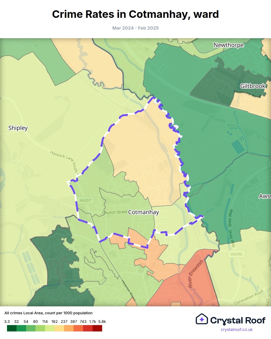 Cotmanhay, (ward) includes areas with the following crime ratings (see map):