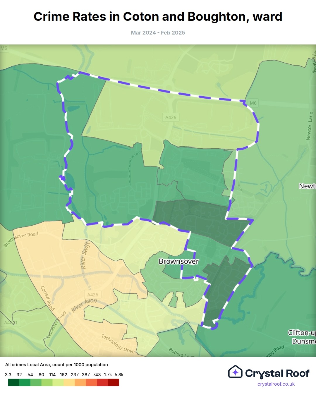 Coton and Boughton, (ward) includes areas with the following crime ratings (see map):