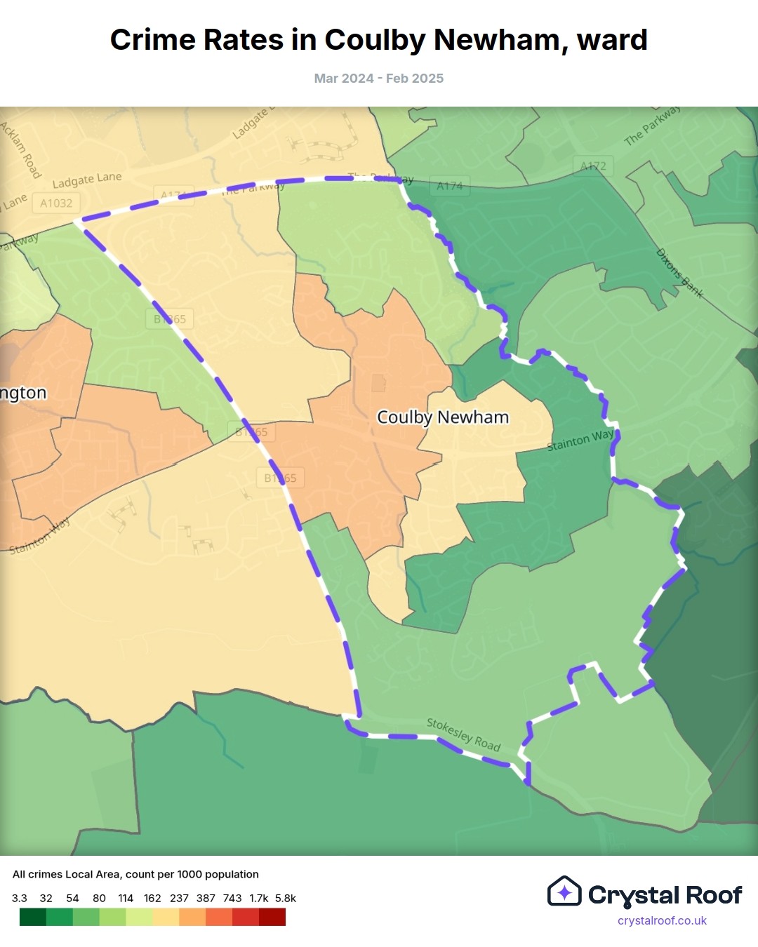 Coulby Newham, (ward) includes areas with the following crime ratings (see map):