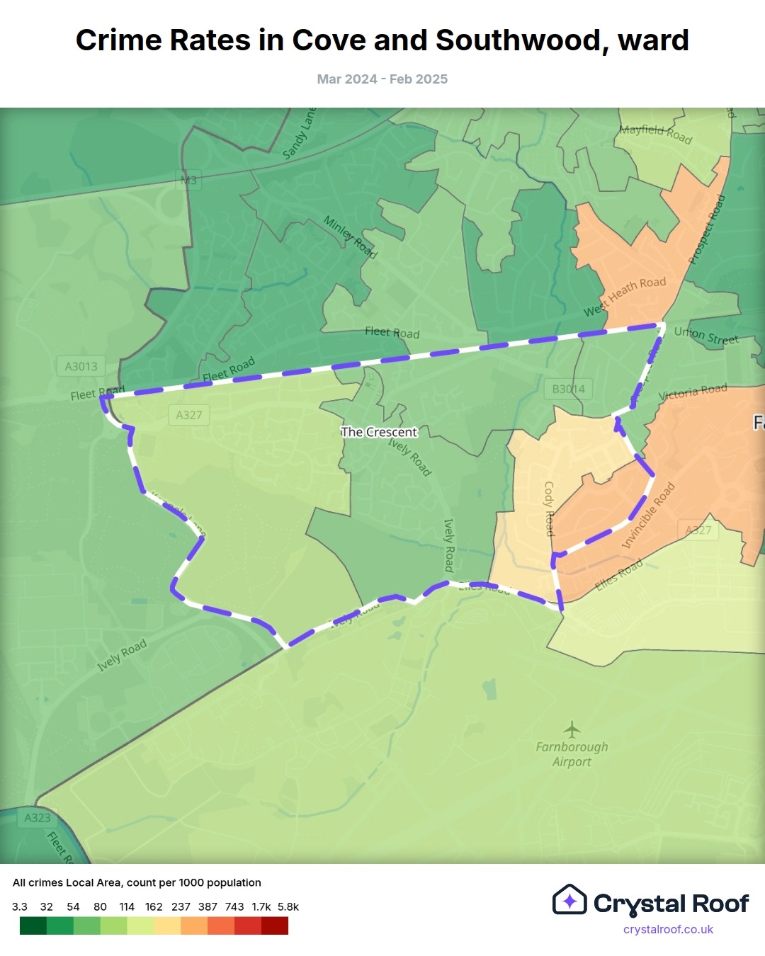 Cove and Southwood, (ward) includes areas with the following crime ratings (see map):