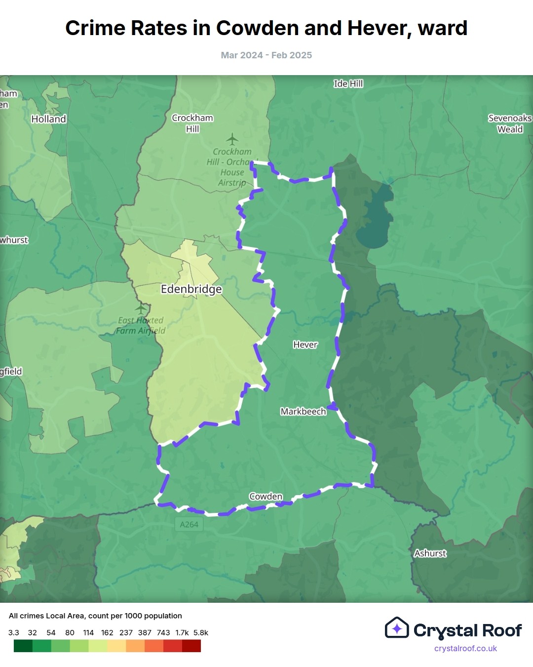 Cowden and Hever, (ward) includes areas with the following crime ratings (see map):