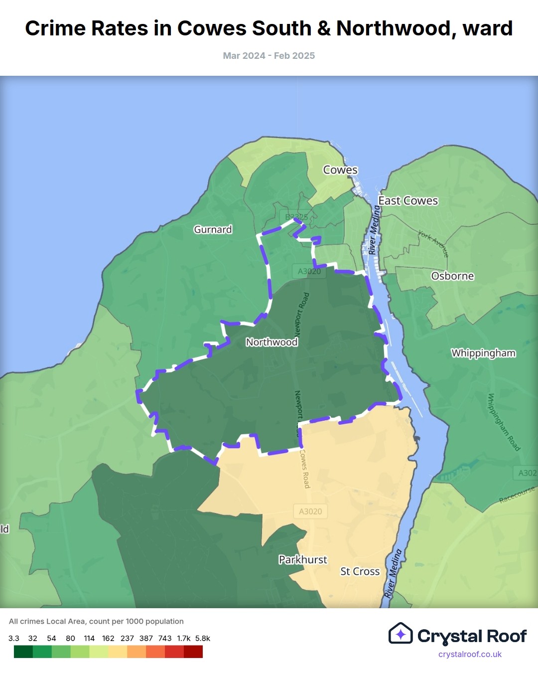 Cowes South & Northwood, (ward) includes areas with the following crime ratings (see map):