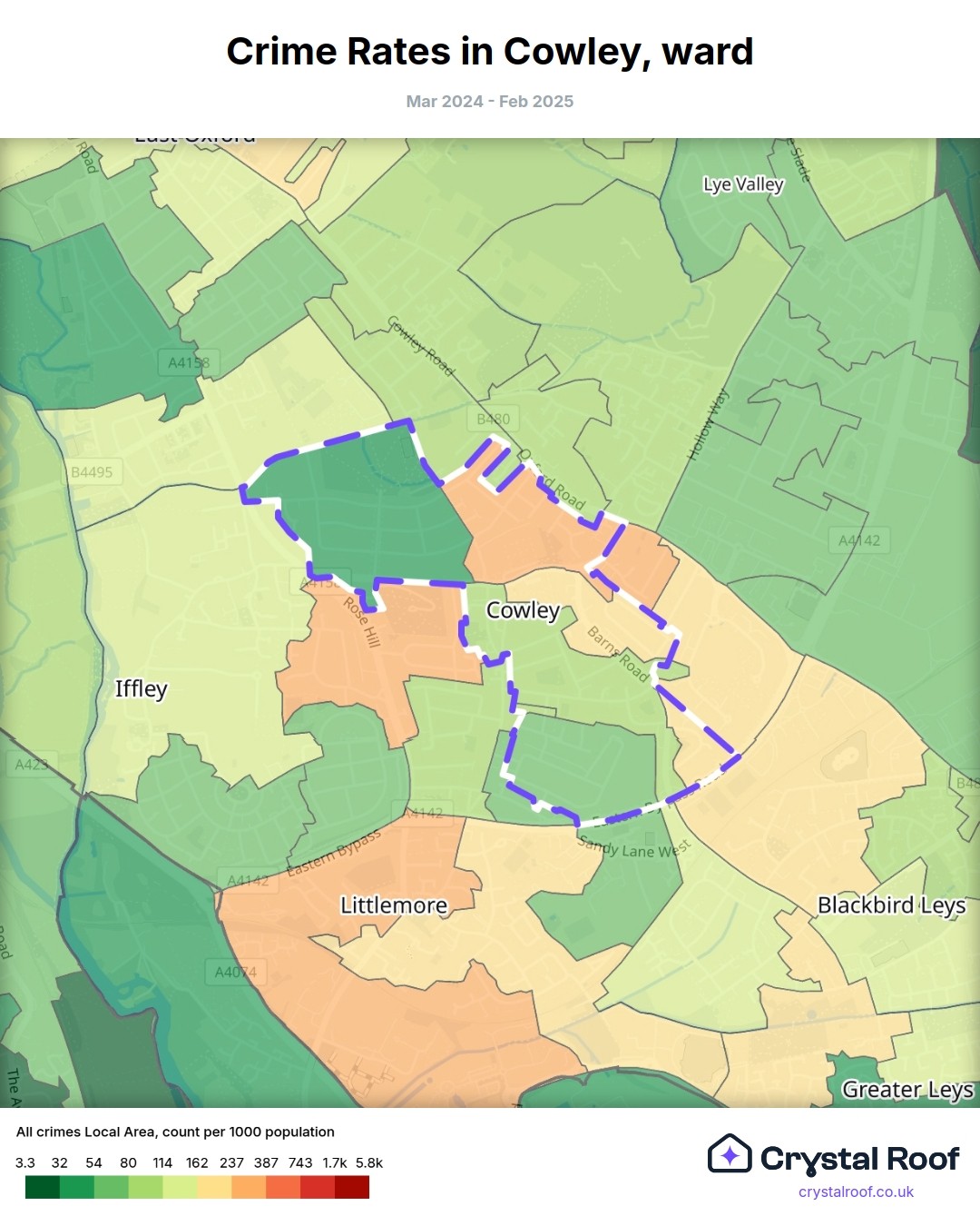 Cowley, (ward) includes areas with the following crime ratings (see map):