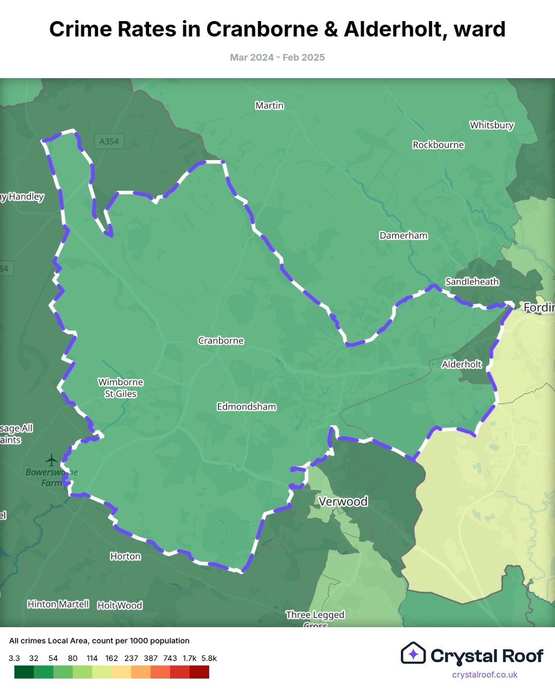 Cranborne & Alderholt, (ward) includes areas with the following crime ratings (see map):