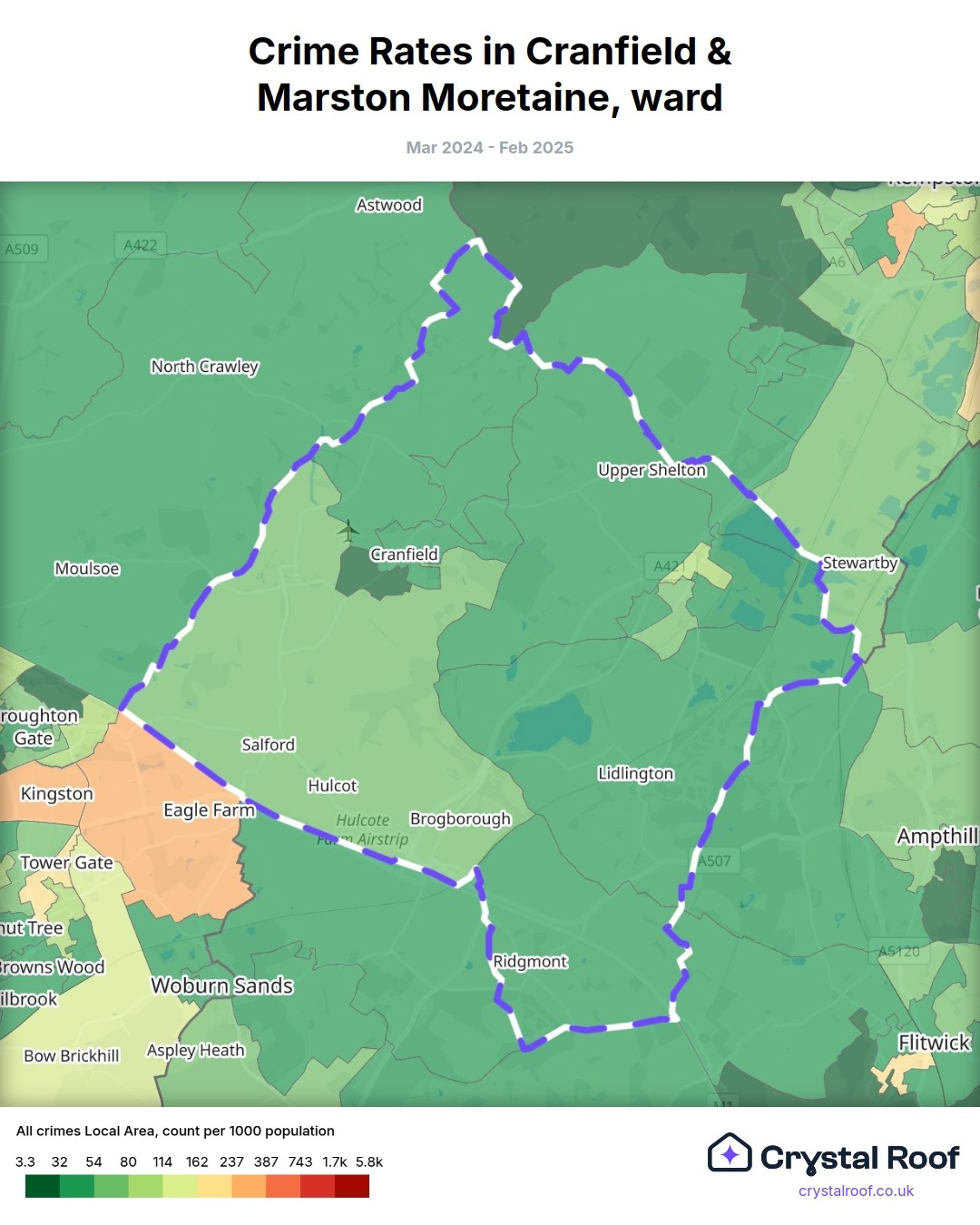 Cranfield & Marston Moretaine, (ward) includes areas with the following crime ratings (see map):