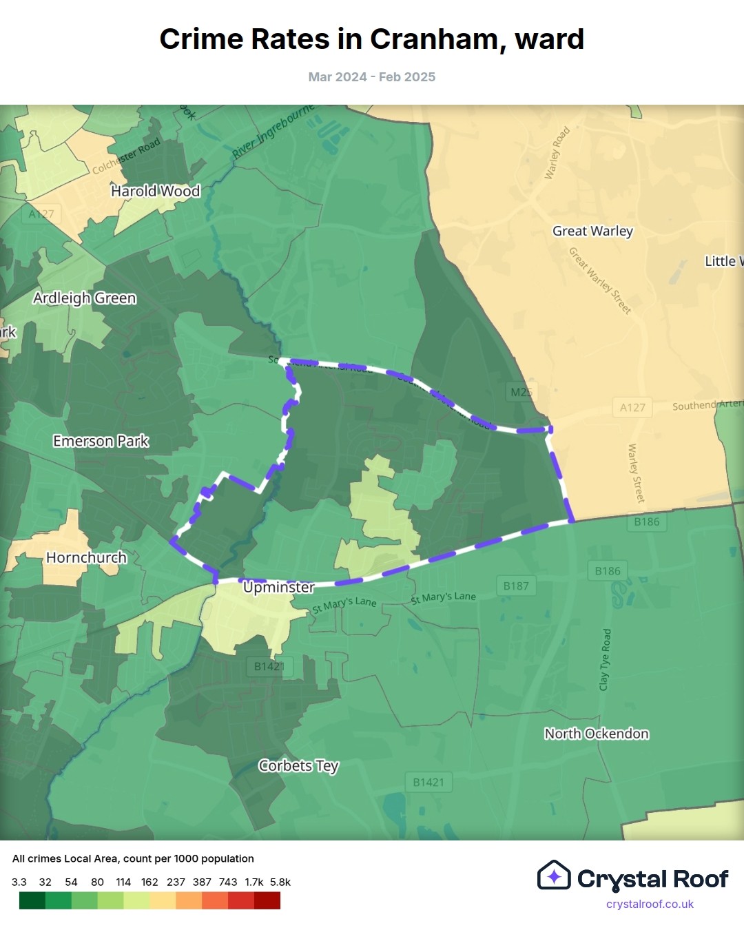 Cranham, (ward) includes areas with the following crime ratings (see map):