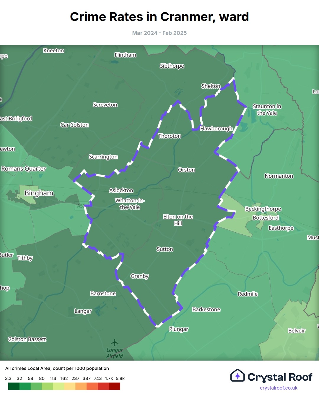 Cranmer, (ward) includes areas with the following crime ratings (see map):