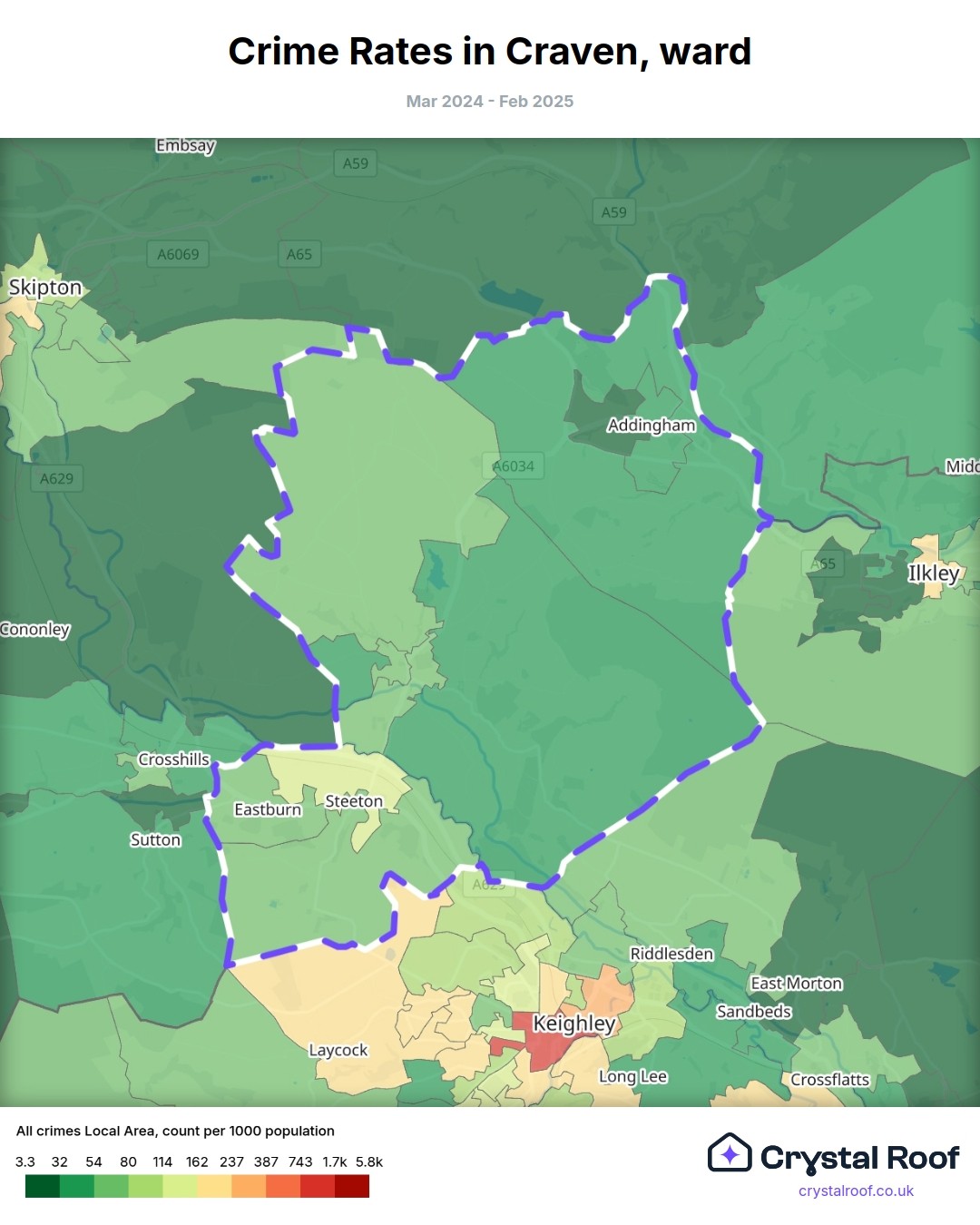 Craven, (ward) includes areas with the following crime ratings (see map):