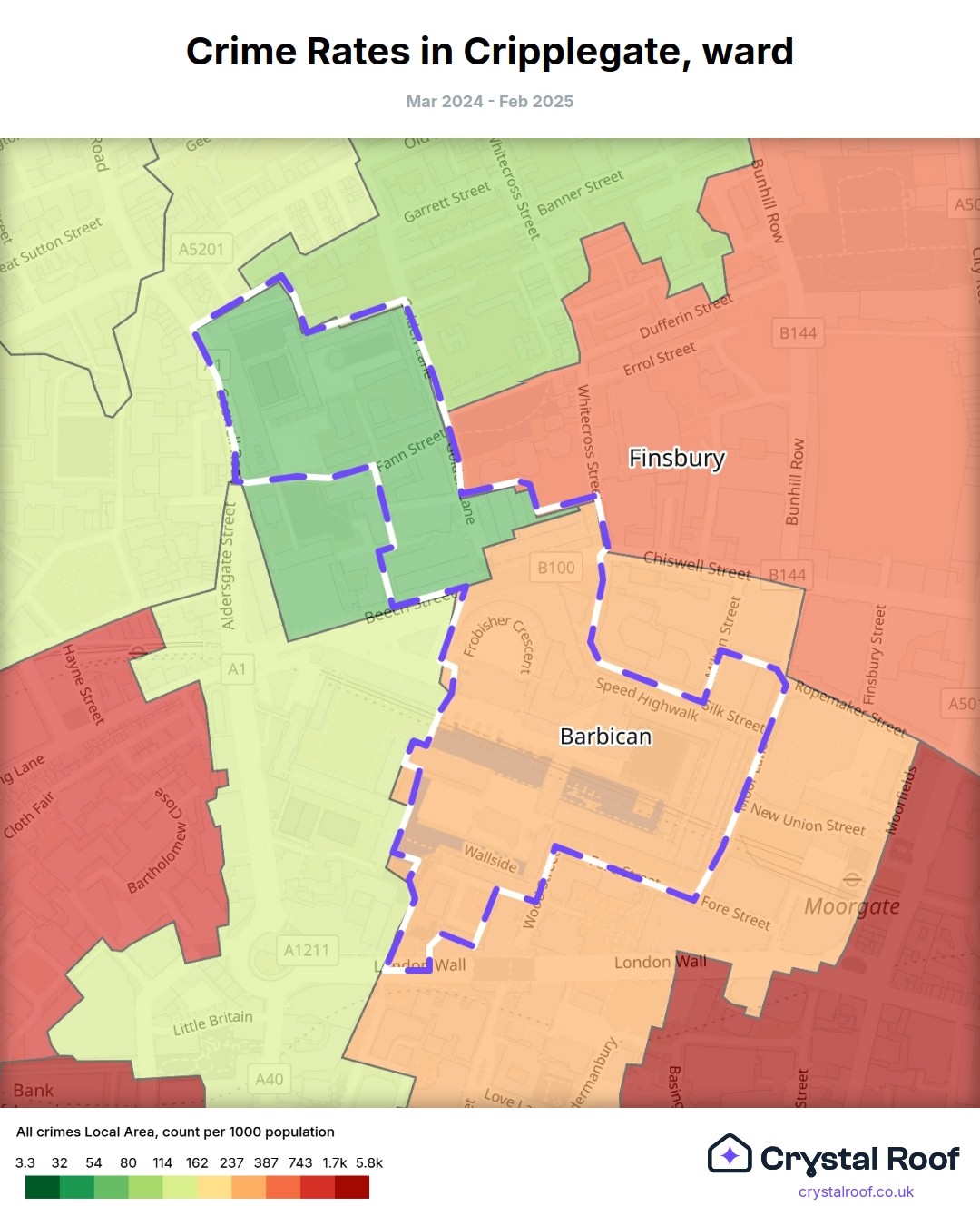 Cripplegate, (ward) includes areas with the following crime ratings (see map):