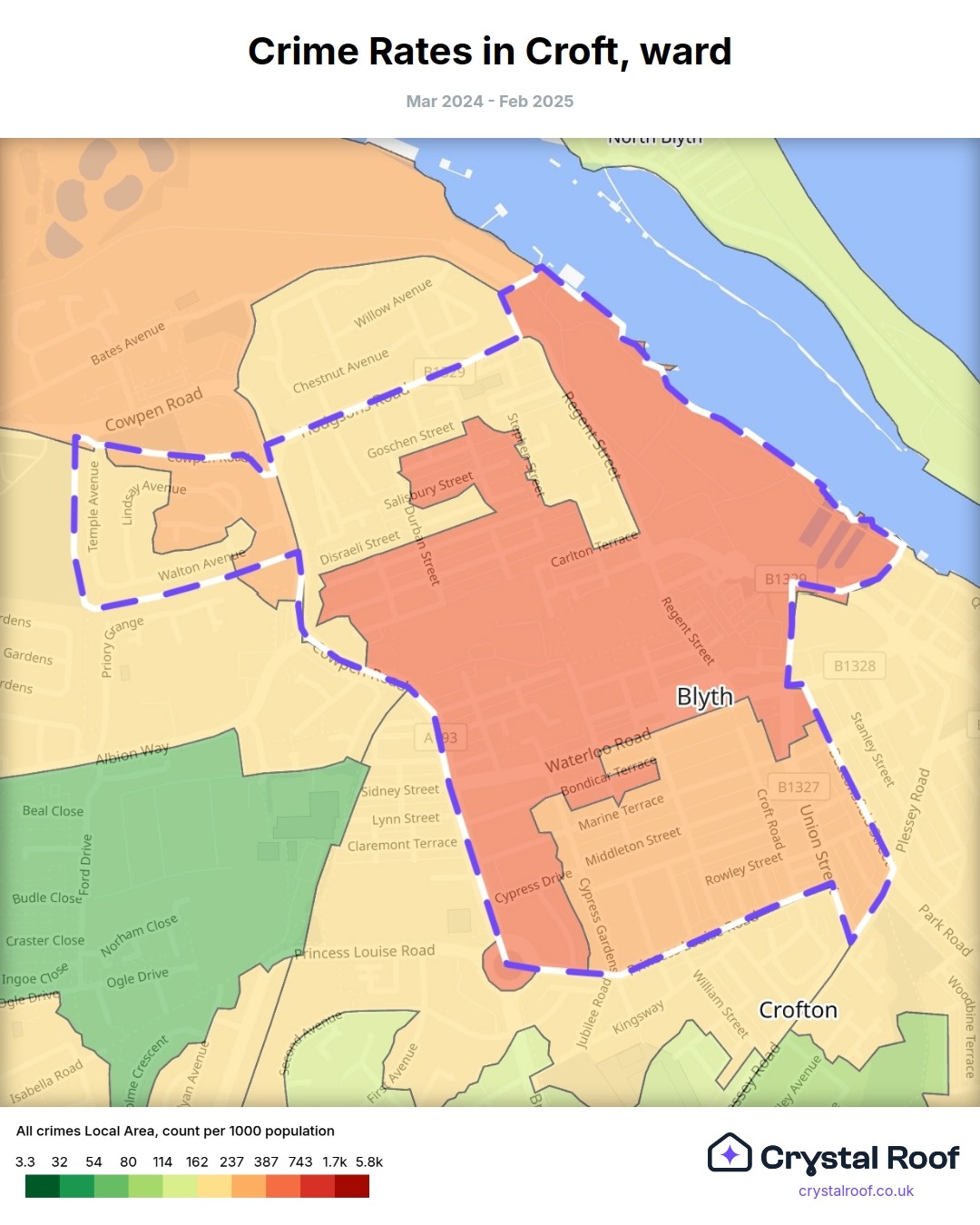 Croft, (ward) includes areas with the following crime ratings (see map):