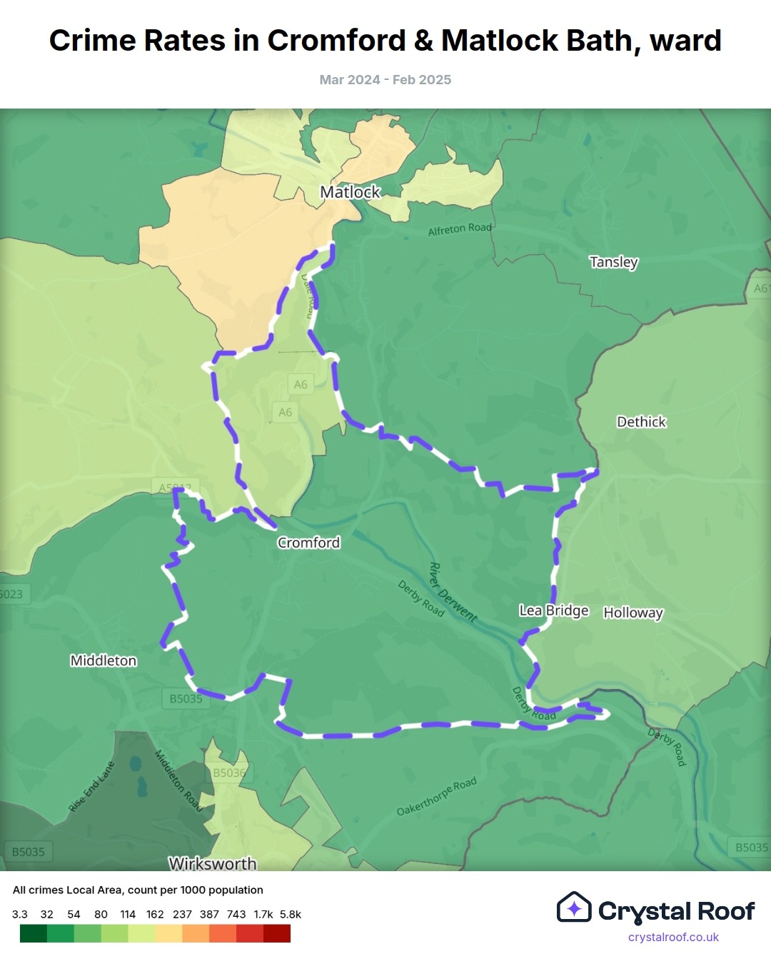 Cromford & Matlock Bath, (ward) includes areas with the following crime ratings (see map):