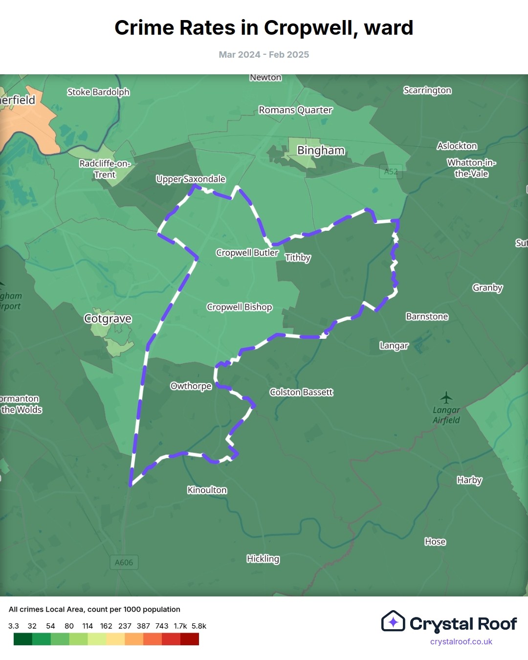 Cropwell, (ward) includes areas with the following crime ratings (see map):