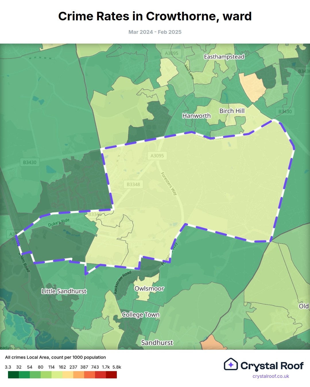 Crowthorne, (ward) includes areas with the following crime ratings (see map):
