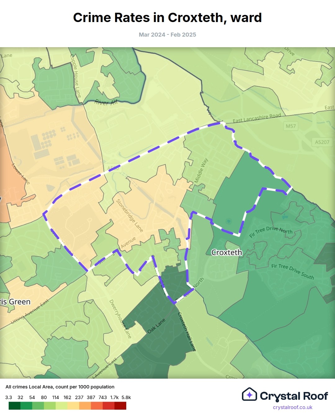 Croxteth, (ward) includes areas with the following crime ratings (see map):