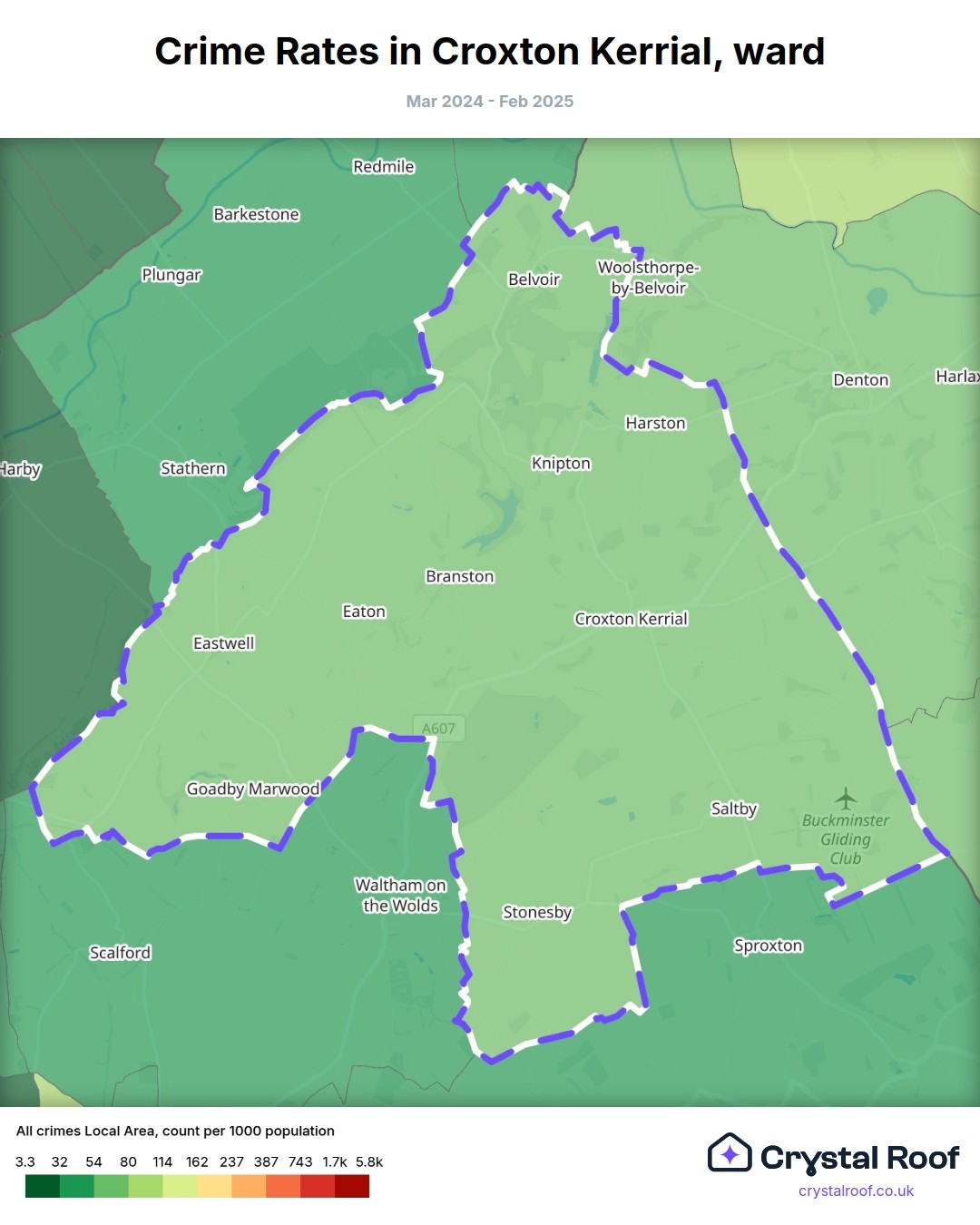 Croxton Kerrial, (ward) includes areas with the following crime ratings (see map):