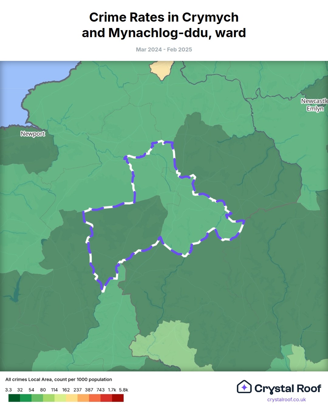 Crymych and Mynachlog-ddu, (ward) includes areas with the following crime ratings (see map):